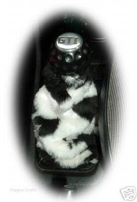 Black and white cow print faux fur fluffy gear stick gaiter cover