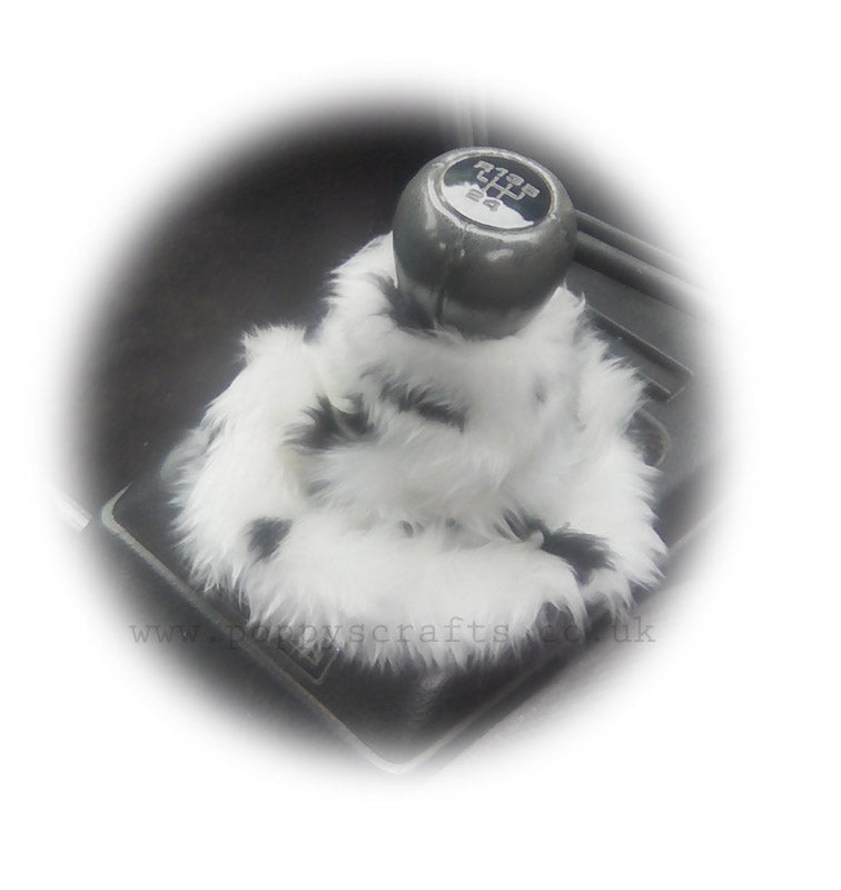 Dalmatian Spot Black and white faux fur fluffy gear stick gaiter cover