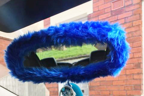 Anyone looking to give their car interior a royal boost should try our Royal Blue faux fur rearview mirror cover!