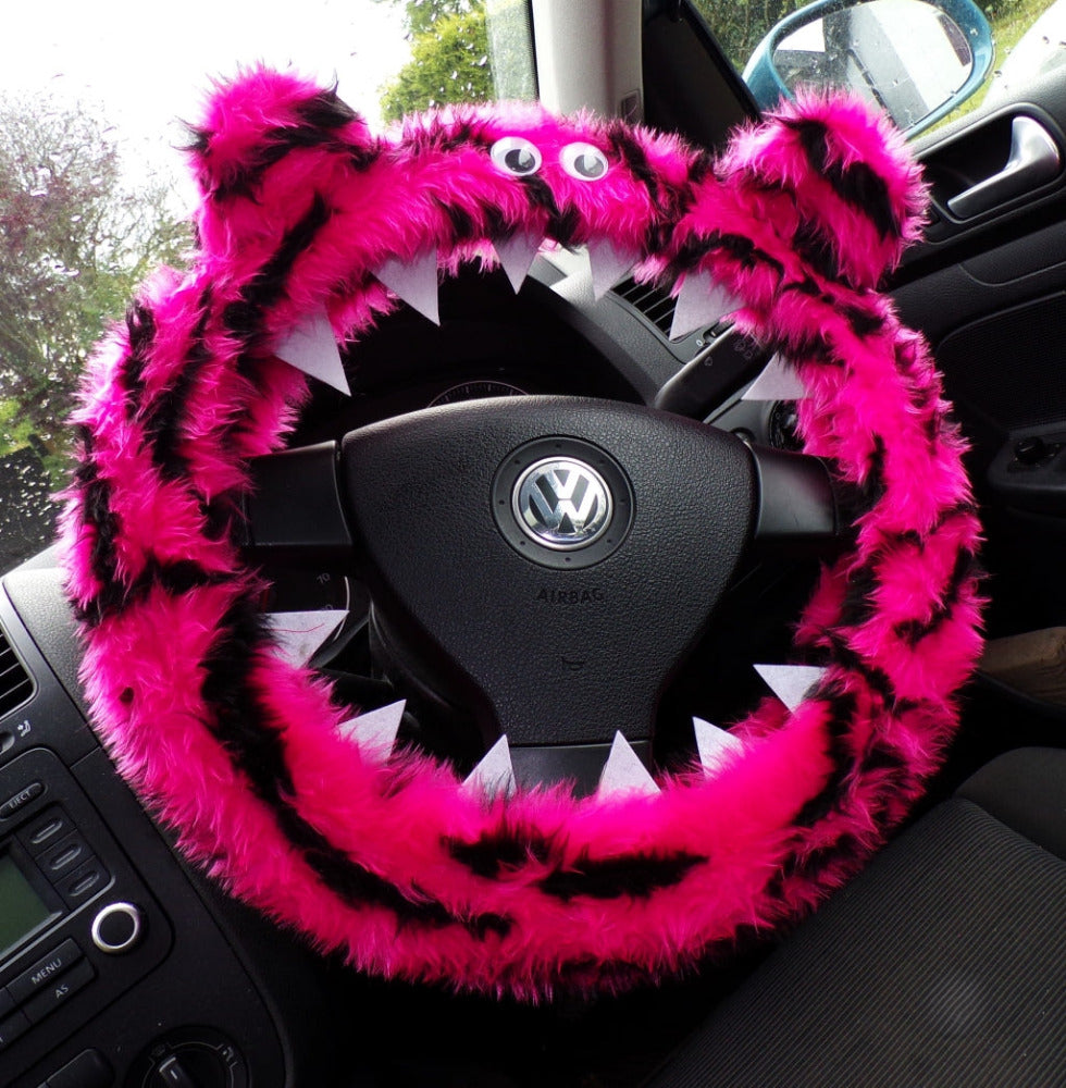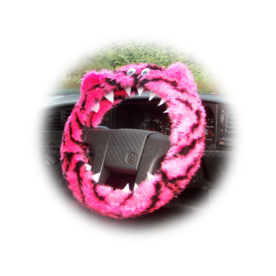 Cute Pink Tiger faux fur Monster fuzzy steering wheel cover