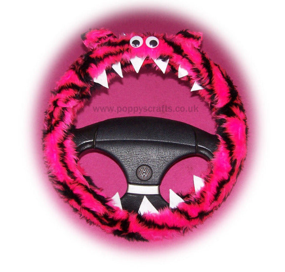 Transform your car from tame to wild with this outrageously awesome pink and black Tiger stripe fuzzy Monster steering wheel cover! Featuring a wild and ferocious finish, it's sure to show off your wild side
