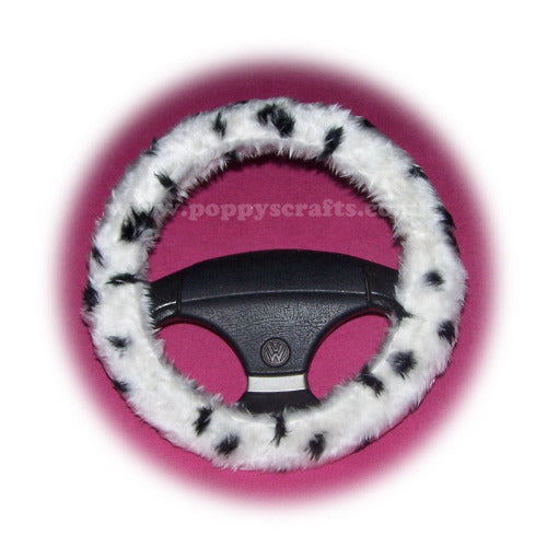 Dalmatian Spot Steering Wheel Cover – Fuzzy Faux Fur Car Accessory