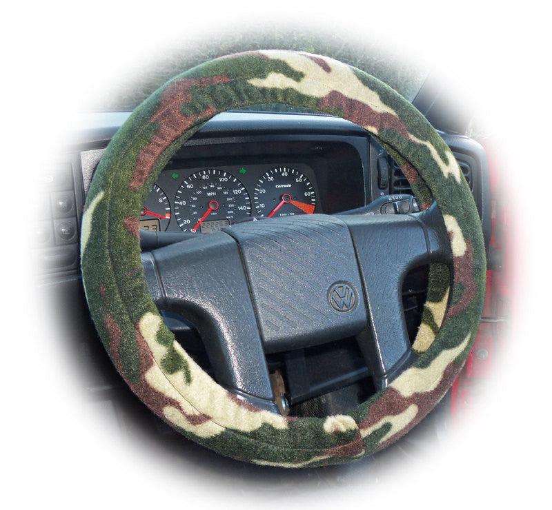 Camouflage print Fleece Car Steering wheel cover & matching seatbelt pad set